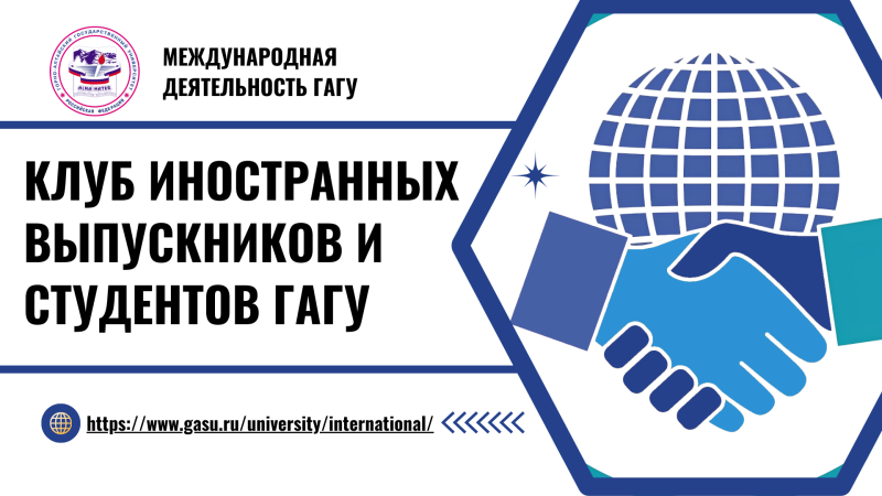 Клуб иностранных выпускников и студентов ГАГУ - это добровольное объединение иностранных студентов и выпускников университета, созданное для укрепления межкультурных связей и повышения имиджа ГАГУ в мировом научно-образовательном пространстве.