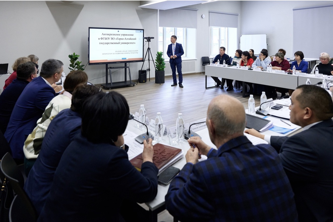 С докладом о результатах исполнения протокола заседания Попечительского совета от 2 сентября 2025 г. выступил ректор Горно-Алтайского государственного университета Евгений Владимирович Павлов. Также Евгений Владимирович доложил о способах и шагах антикризисного управления в университете и уже принятых мерах.