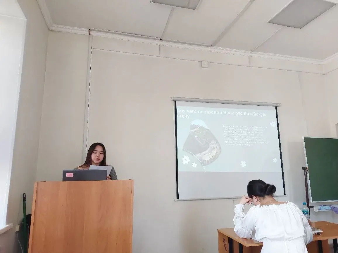 присуждено Диятовой К. К. (534 гр.) за доклад «Великая китайская стена: история и современное состояние» (научный руководитель – ассистент. Айбыкова А.А.).